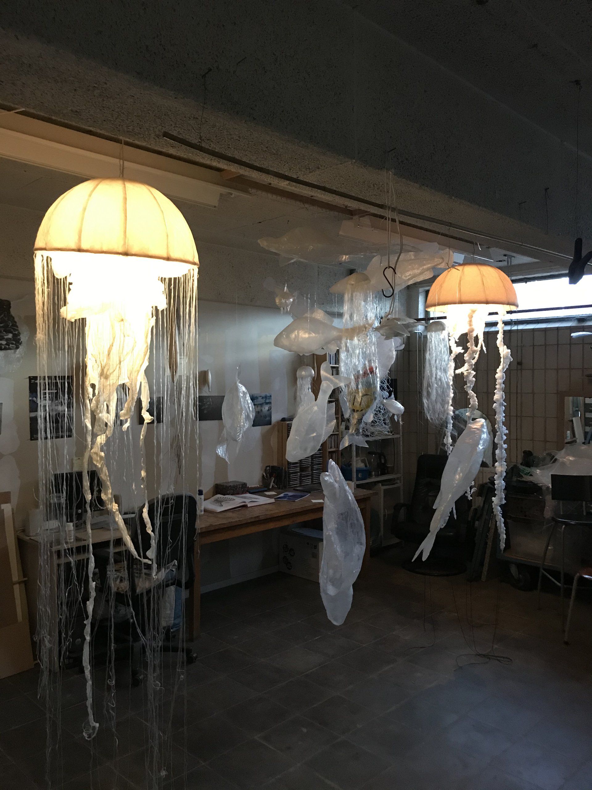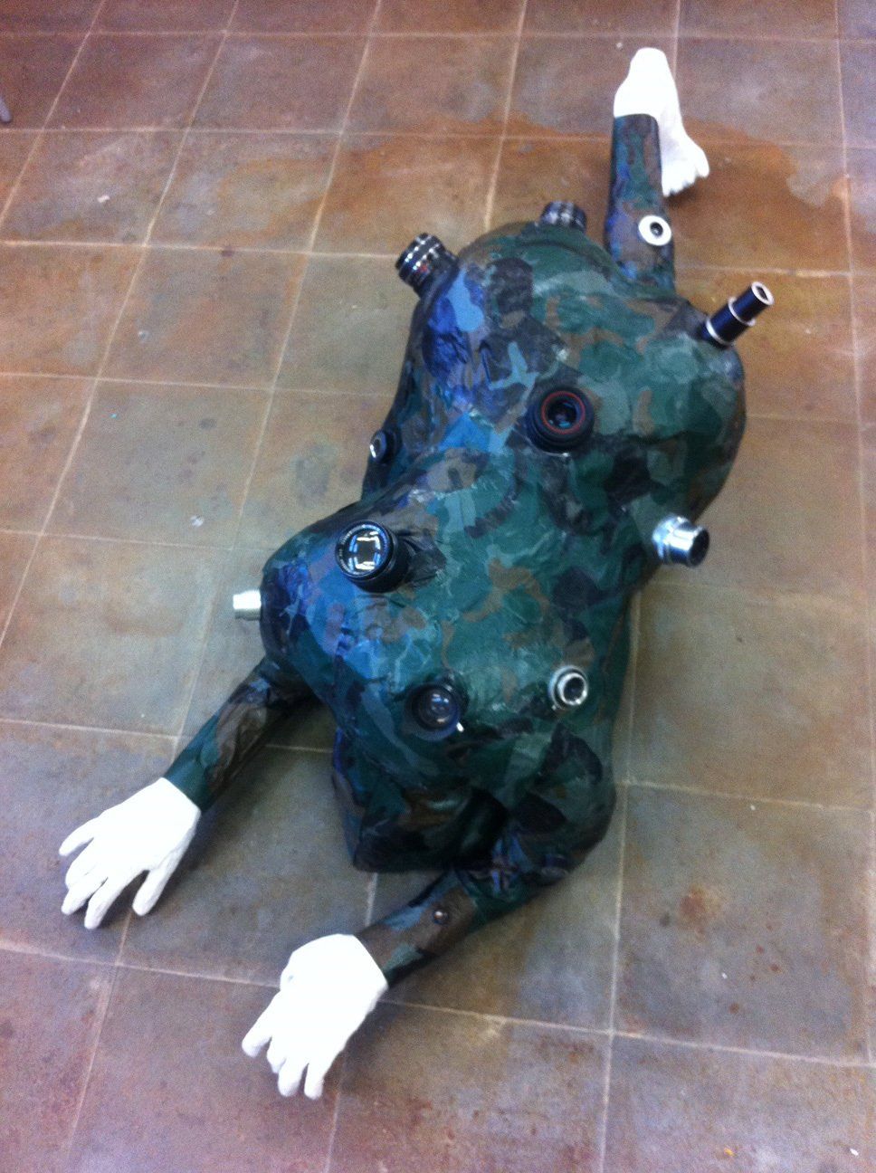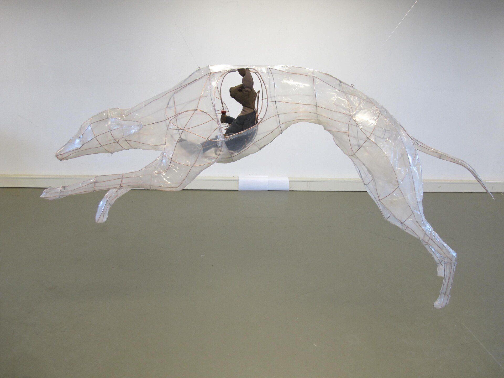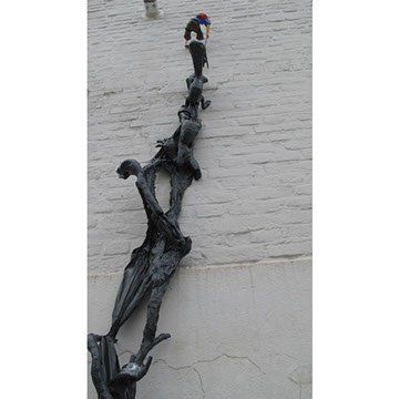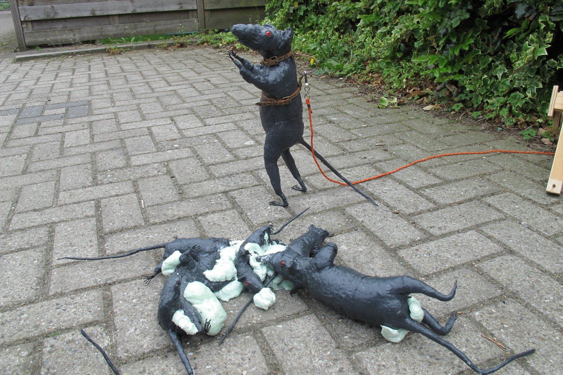 Mijn beelden en installaties zijn levensgroot en gemaakt van o.a. plastic afvalzakken, styrofoam, latex, kit en pur.