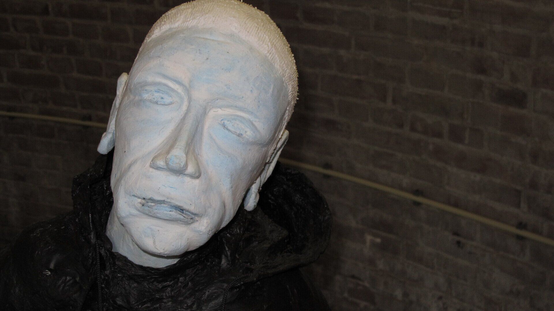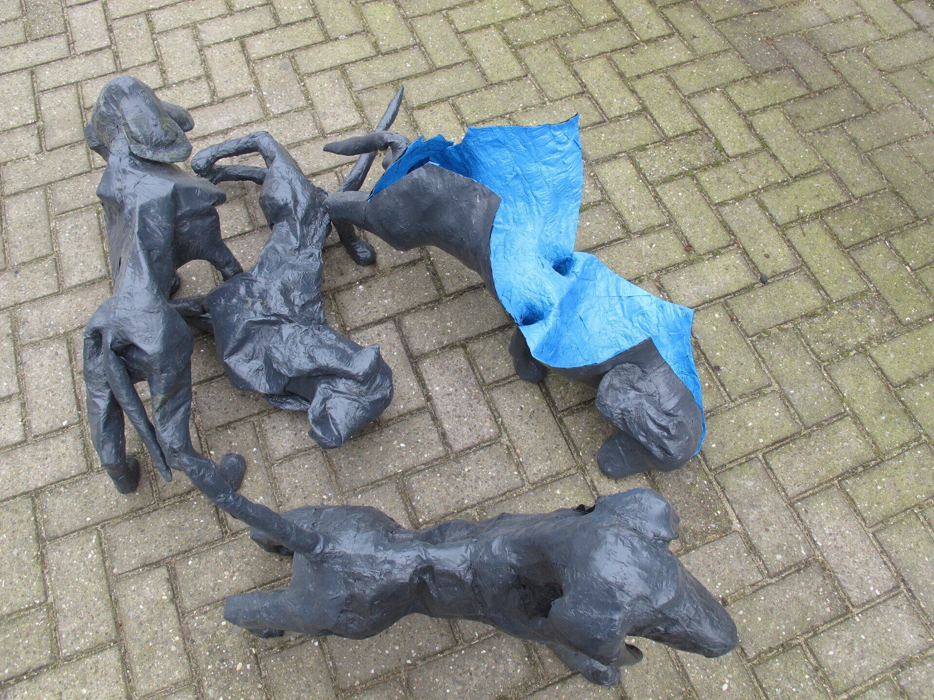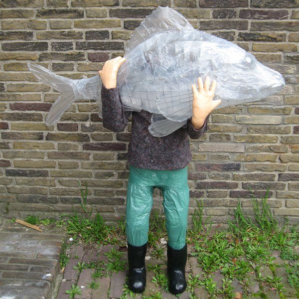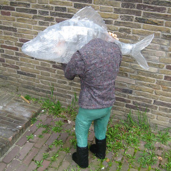 Mijn beelden en installaties zijn levensgroot en gemaakt van o.a. plastic afvalzakken, styrofoam, latex, kit en pur.
