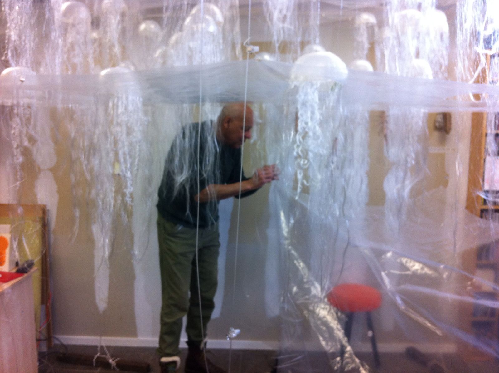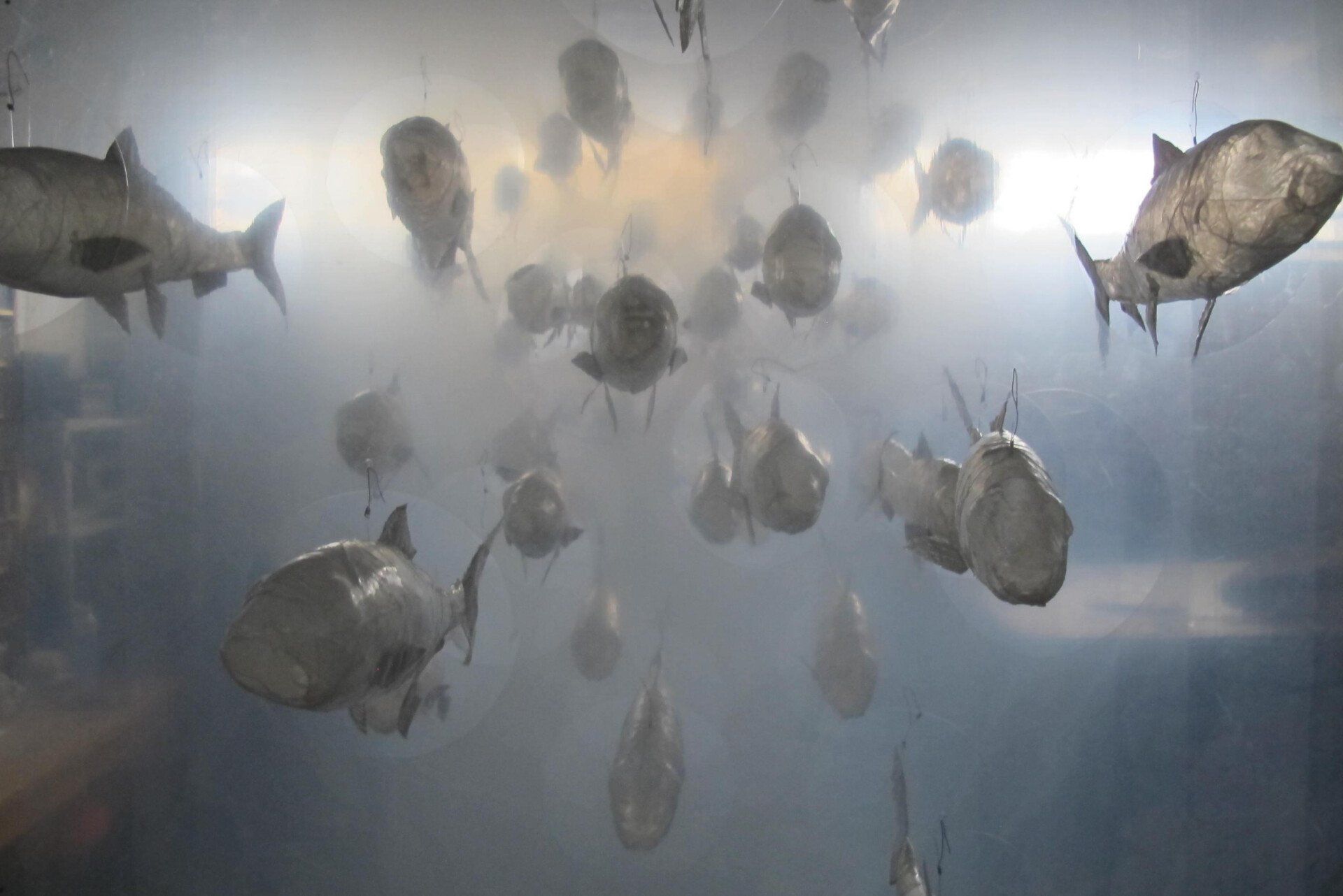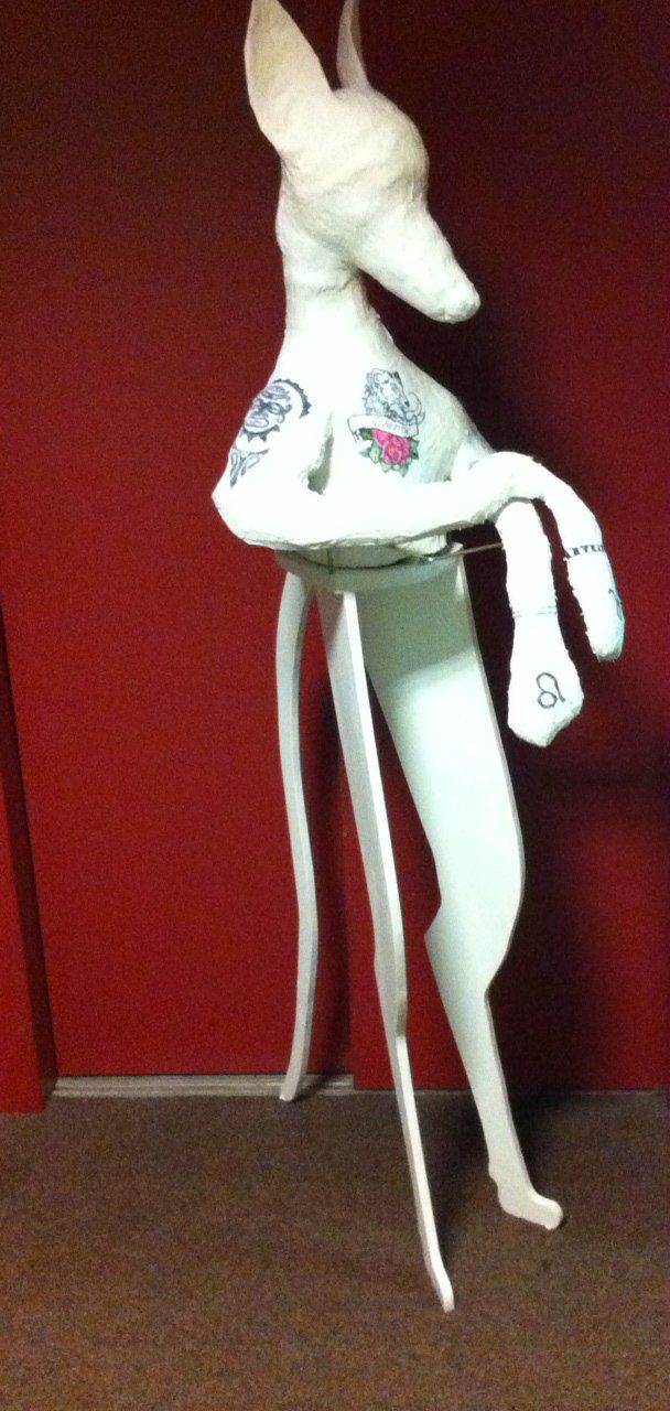 Mijn beelden en installaties zijn levensgroot en gemaakt van o.a. plastic afvalzakken, styrofoam, latex, kit en pur.